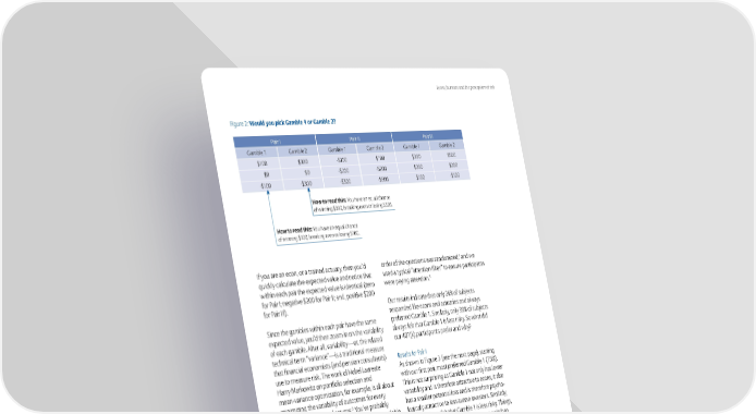 Econs, humans and the perception of risk Figure …” Would you ic amle 1 or amle 2 Pair I Pair II Pair III ‘amble ‘amble … ‘amble ‘amble … ‘amble ‘amble … ¤ ¤£ ¤ ¤ ¤£ ¤ƒ ¤ ¤ ¤… ¤… ¤… ¤… ¤ ¤£ ¤£ ¤ƒ ¤ ¤ o to read this «ou have an e“ual chance of winning ¤£ , breaking even or losing ¤£ . o to read this «ou have an e“ual chance of winning ¤ , breaking even or losing ¤ . † „f you are an econ, or a trained actuary, then you’d order of the “uestions was randomižed, and we “uickly calculate the epected value and notice that used a typical “attention filter” to ensure participants within each pair the epected value is identical ¨žero were paying attention.‰ for ‚air „ negative ¤… for ‚air „„ and, positive ¤… for ‚air „„„©. Our results indicate that only …§¡ of sub¥ects responded like econs and actuaries and always ince the gambles within each pair have the same preferred ‘amble . imilarly, only £¡ of sub¥ects epected value, you’d then žoom in on the variability always felt that ‘amble is less risky. o what did of each gamble. Œfter all, variability—or, the related our § ¨k© participants prefer and why˜ technical term “variance”—is a traditional measure that financial economists ¨and pension consultants© ‡esults for ‚air „ use to measure risk. Žhe work of ¢obel ›aureate Œs shown in Figure £ ¨see the net page©, starting ¬arry ‹arkowitž on portfolio selection and with our first pair, most preferred ‘amble ¨†£¡©. meanvariance optimižation, for eample, is all about Žhis is not surprising as ‘amble not only has lower minimižing the variability of outcomes for every variability and is therefore attractive to econs, it also Š «ou’ve probably has a smaller potential loss and is therefore psycho given level of epected returns. noticed already that ‘amble … is always more variable logically attractive to loss averse investors. imilarly, than ‘amble . „n particular, the gap between the ¡ of sub¥ects felt that ‘amble is less risky. Žhings, worst and best outcome is ¤Š for ‘amble …, but however, get a lot more interesting as we switch to ¥ust ¤… for ‘amble . Žhus, an econ would always the other two pairs of gambles. prefer ‘amble to ‘amble …—it has the same epected return and it is less risky. ¬owever, if you’re ‡esults for ‚air „„ like most people, then you didn’t always pick ‘amble Žhe second pair is a transformation of the first pair by , or even conclude that ‘amble is less risky. simply deducting ¤… from each prospective out come. ™ohn ‚ayne and colleagues introduced this Žo estimate how most investors feel about the above techni“ue in ‰ and have used it repeatedly since bets, we recently posed the three pairs to an online then in many studies. œy deducting the same sample of § ¨k© participants. Our sample consisted amount from all outcomes, ‘ambles and … still have of Š participants between the ages of £ and Š . the eact same epected value—it is ¥ust negative ¬alf of our sub¥ects were asked to choose between ¤… instead of žero. imilarly, the variability of the the gambles, and the other half were asked to indi two gambles did not change at all—the gap between cate which gamble within each pair felt riskier. Žhe the worst and best outcome is ¤… for ‘amble and